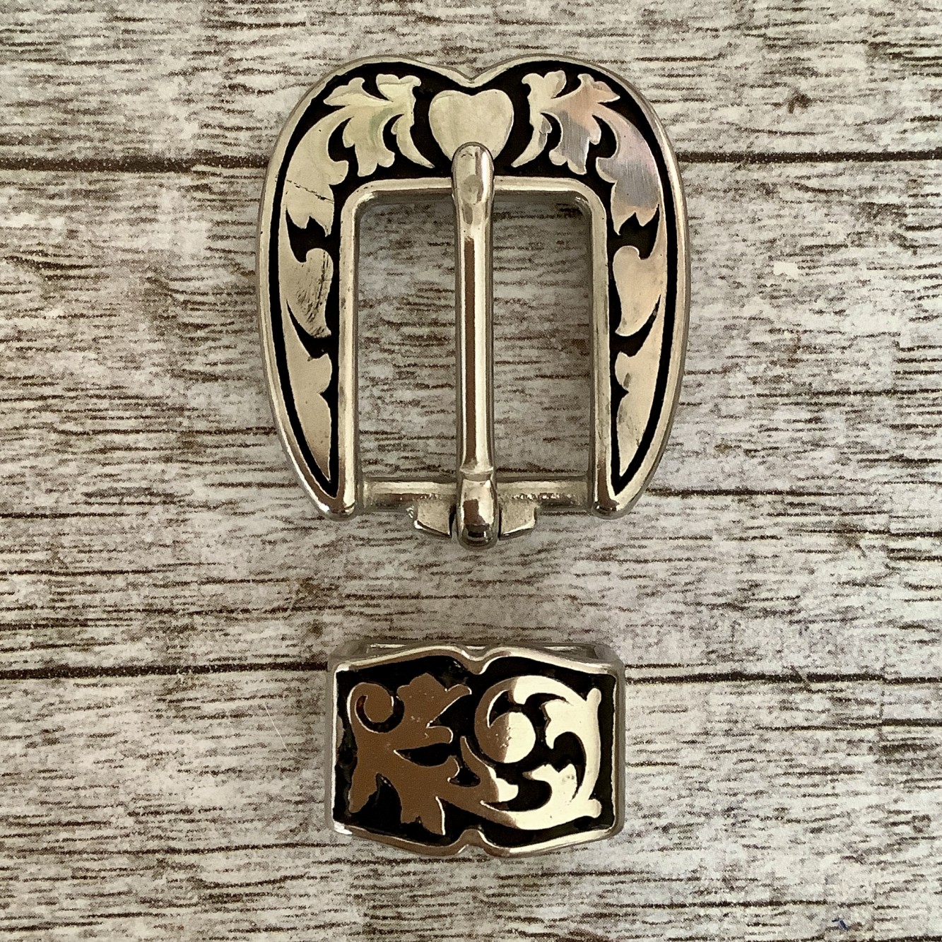 JWP Buckle Set Heart Shaped Black Accents