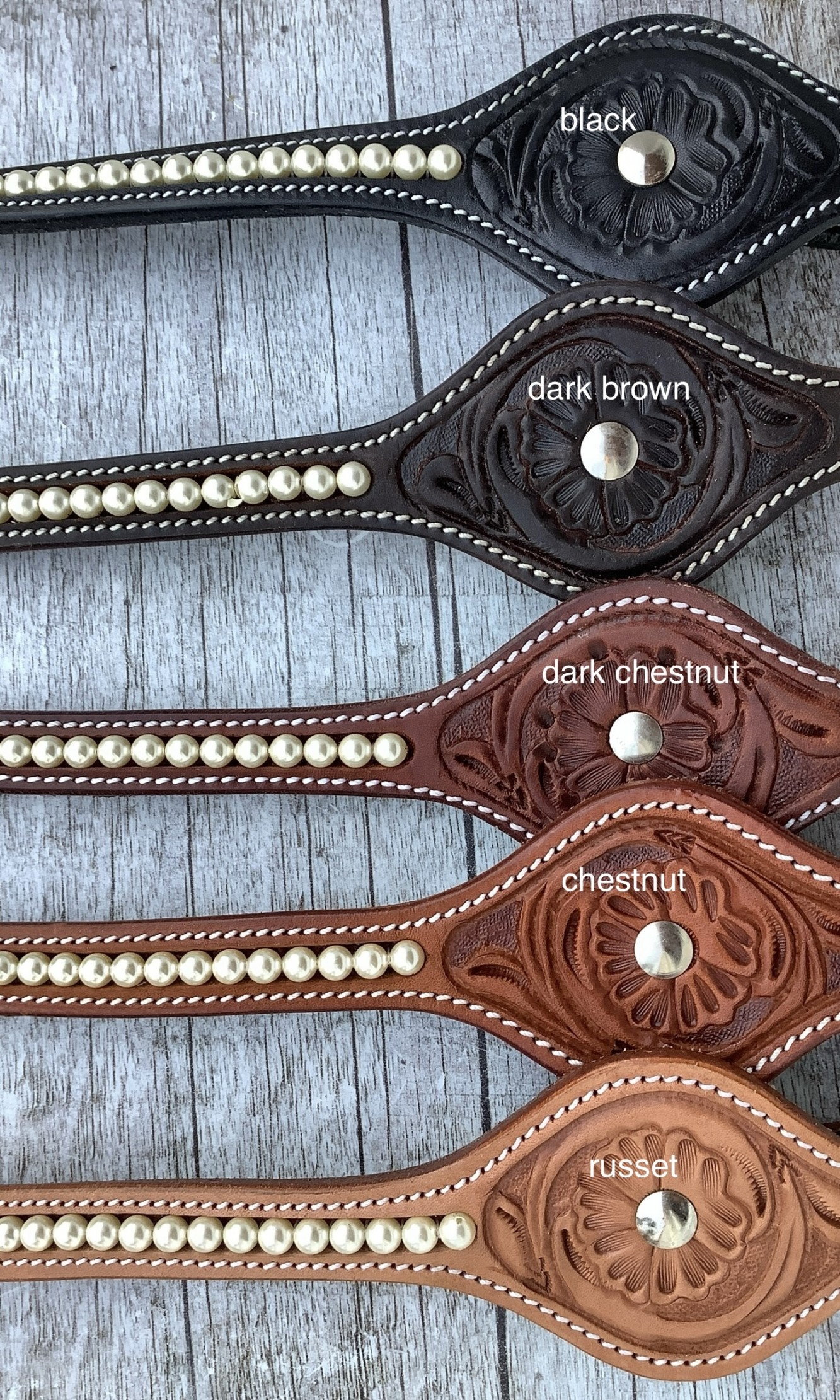 V-Brow mit Perlen runde Cheeks floral 5 Lederfarben