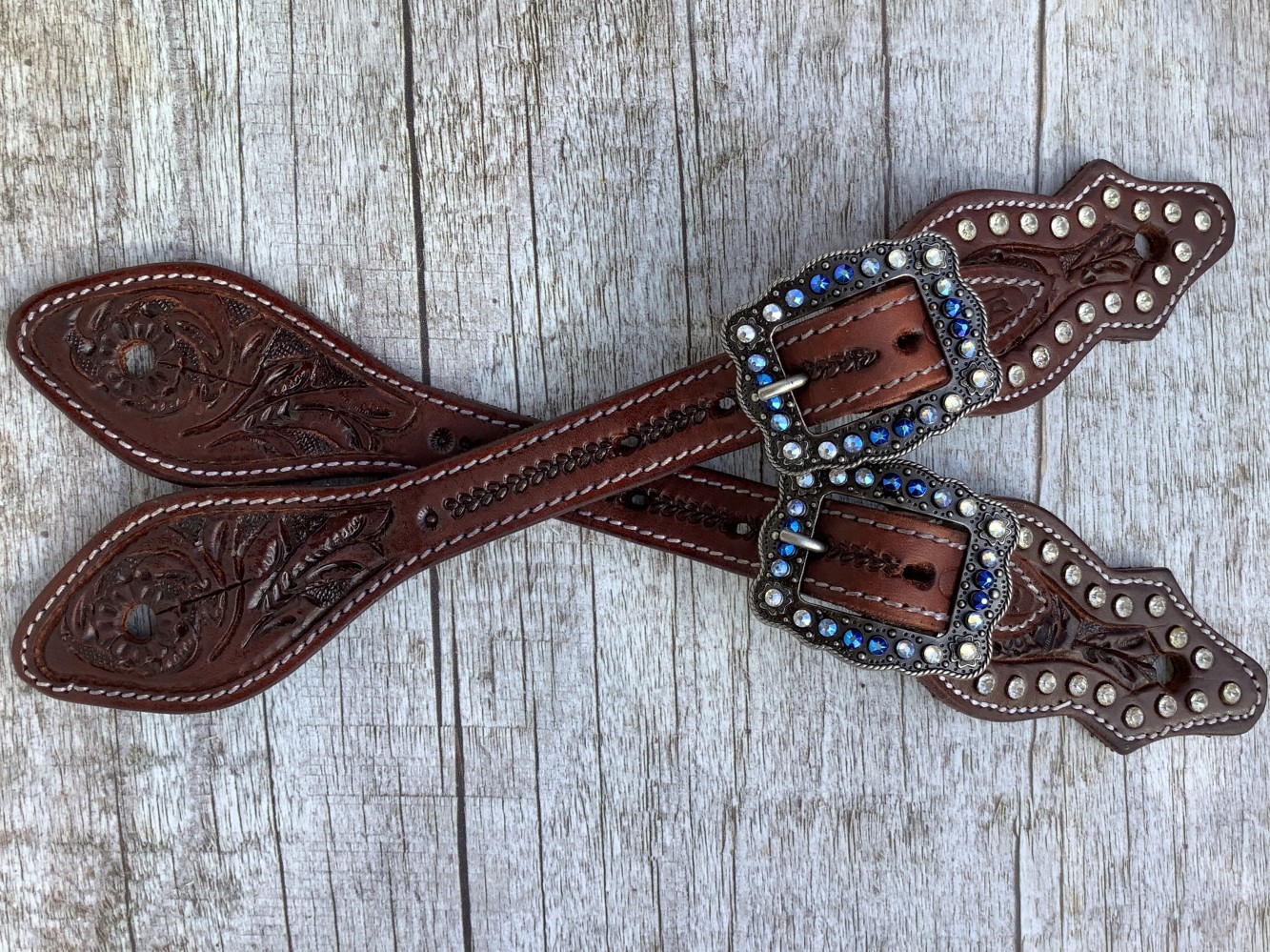 Sporenriemen mit Perlen floral orig. Austrian Crystals